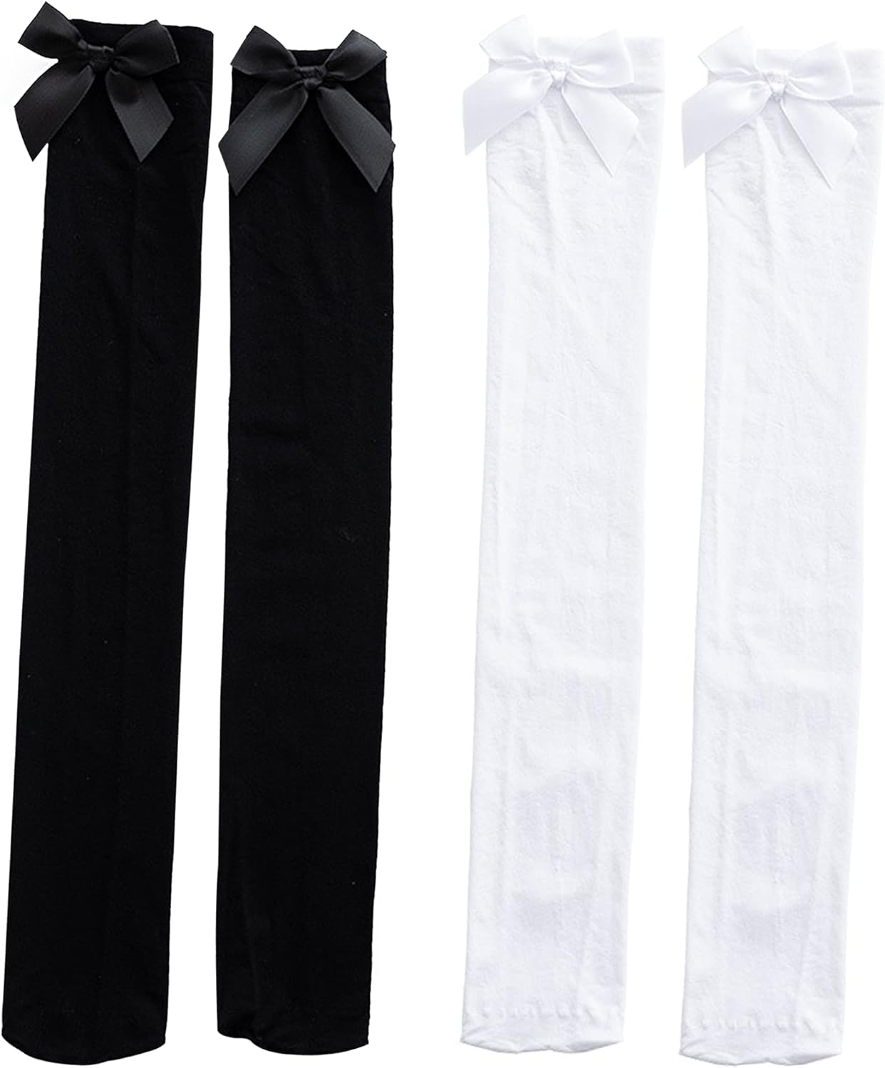 Geyoga 2 Pairs Opaque Bow Stockings Thigh High Stockings Hold up Black White Knee High Socks with Bows Long over The Knee Socks for Women for Halloween Party Costumes