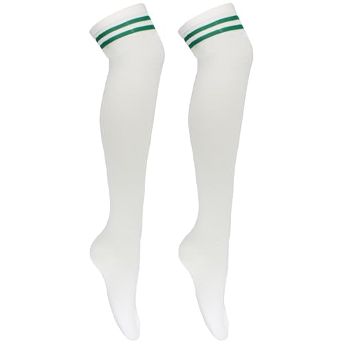 Thigh High Socks White Knee High Socks Womens Knee-Highs Thigh Highs Stripe Long White Sock Over the Knee Womens Cheerleader Pub Golf Fancy Dress Green 2 Stripe