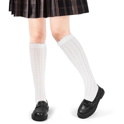KWJEIULSOQ 1 Pairs Women Knee High Socks, Frilly White Knee High Socks, Elastic Breathable Mesh Calf-Length Pop Stockings for Women