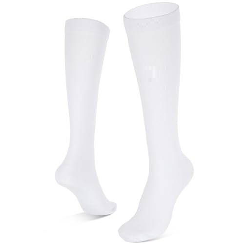 Mysocks White Knee High Socks for Women Men Girls - Seamless Toe Plain Long Knee Length Socks - Breathable Cotton Tall Sock Stockings White,8-11