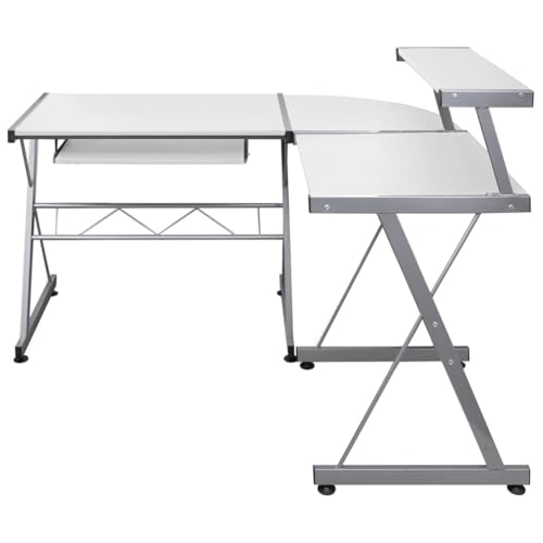 vidaXL White L-Shaped Corner Desk Wooden MDF with Large Storage Space, Easy to Clean, Scratch Resistant, Perfect for Home Office or Study