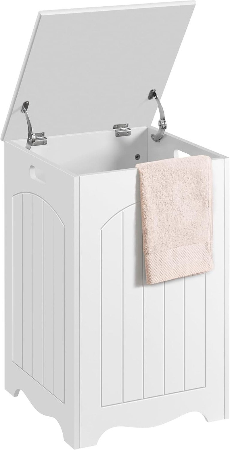 Yaheetech White Bathroom Laundry Basket Large Bin Wooden Storage Home Organizer Hamper with Lid