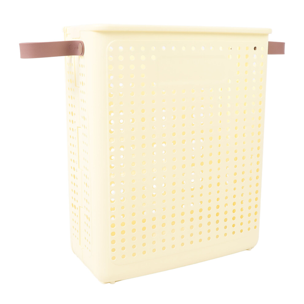 Foldable Cream White Slim Laundry Basket, PP Plastic, Space Saving