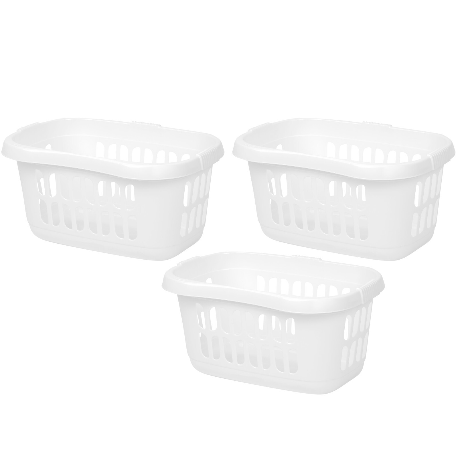 3 x White Laundry Basket Plastic High Grade Hipster Style Washing Clothes Linen