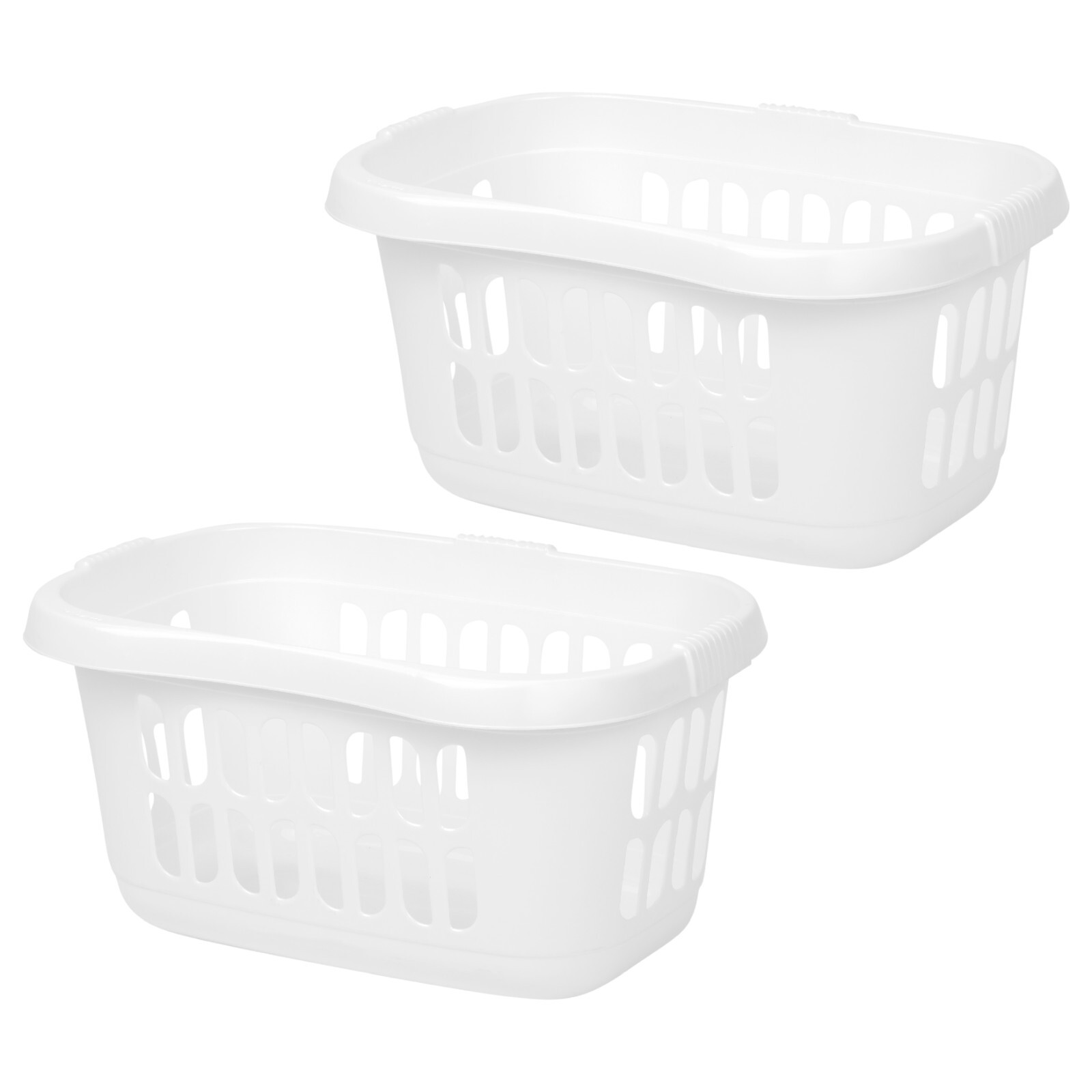 2 x White Laundry Basket Plastic High Grade Hipster Style Washing Clothes Linen