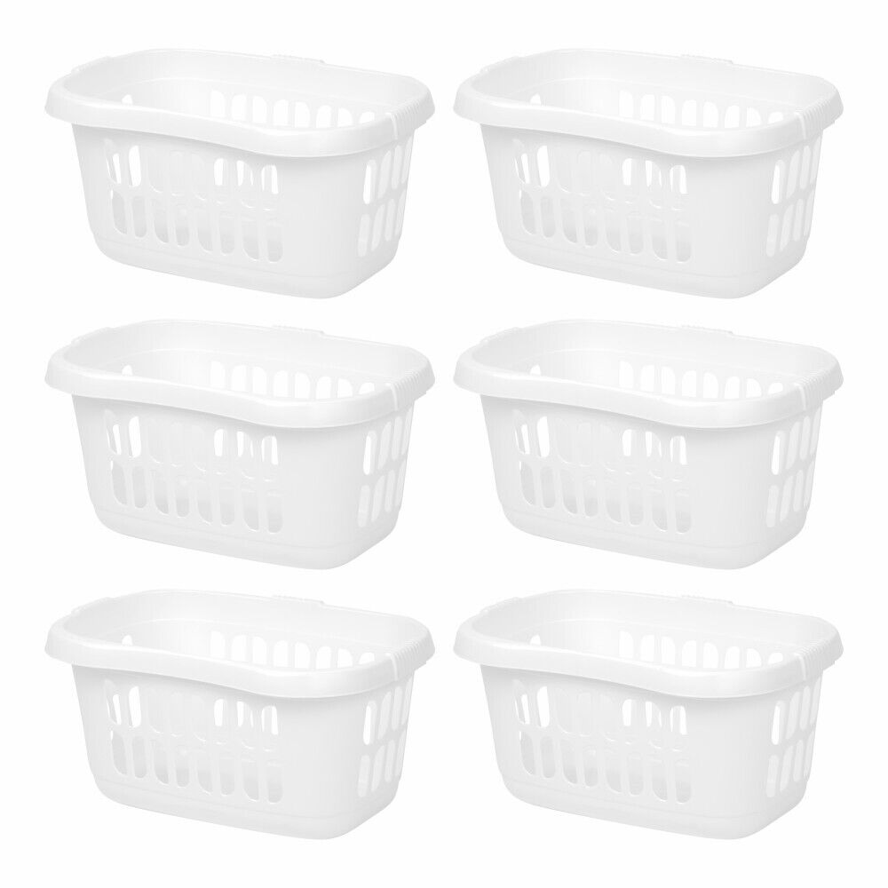 6 x White Laundry Basket Plastic High Grade Hipster Style Washing Clothes Linen