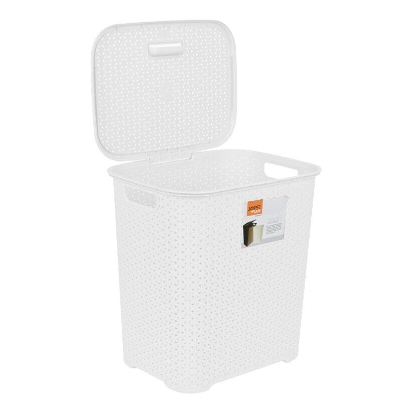 Drop All 45L Small Plastic WHITE Laundry Basket with Lid Washing Clothes Hamper