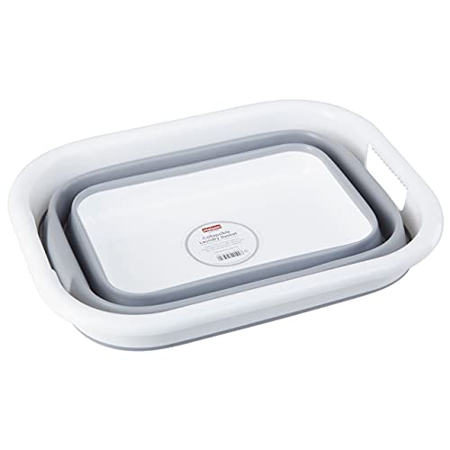Collapsible Grey White Laundry Basket, Grey