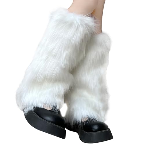 Y2K Leg Warmer, White Fur Leg Warmers for Women, Winter Fashion Accessories for