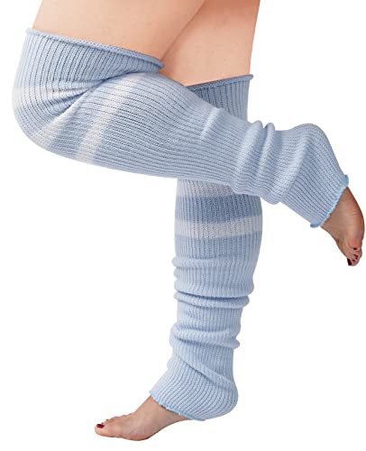 Plus Size Leg Warmers Thigh High Socks for Thick Thighs- Extra Long Striped Thick Over the Knee Stockings- Boot Socks, Baby Blue & White