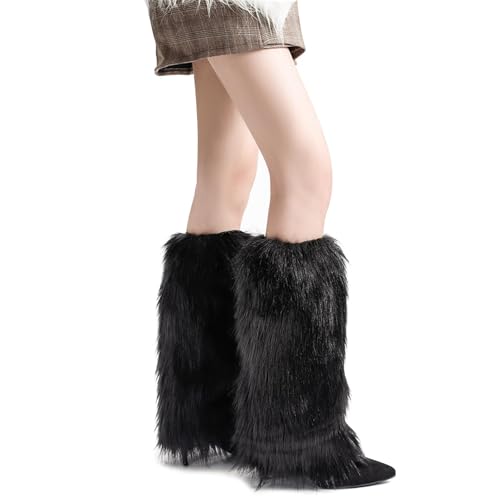 LSYZHX 40cm Fur Leg Warmers for Women, Furry Leg Warmers White Leg Warmers,Fashion Furry Boots Leg Warmers (Black, One Size)
