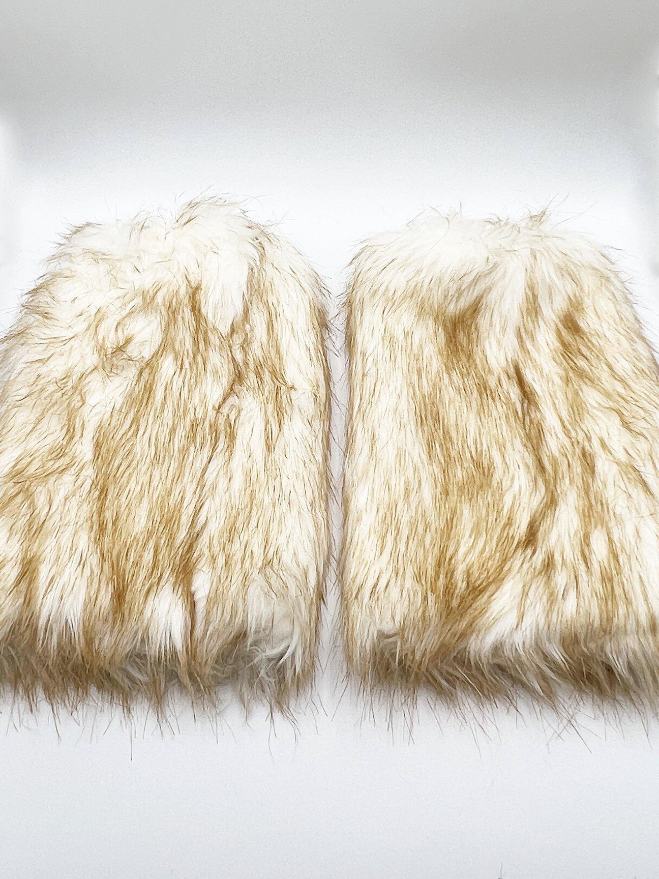 OnIUeZky Faux Furry Leg Warmers 1 Pair 15.7 Inch Fuzzy Leg Warmers for Womens Winter Warm Fur Boot Cuffs Covers for Christmas, Halloween, Hippie Costume White.