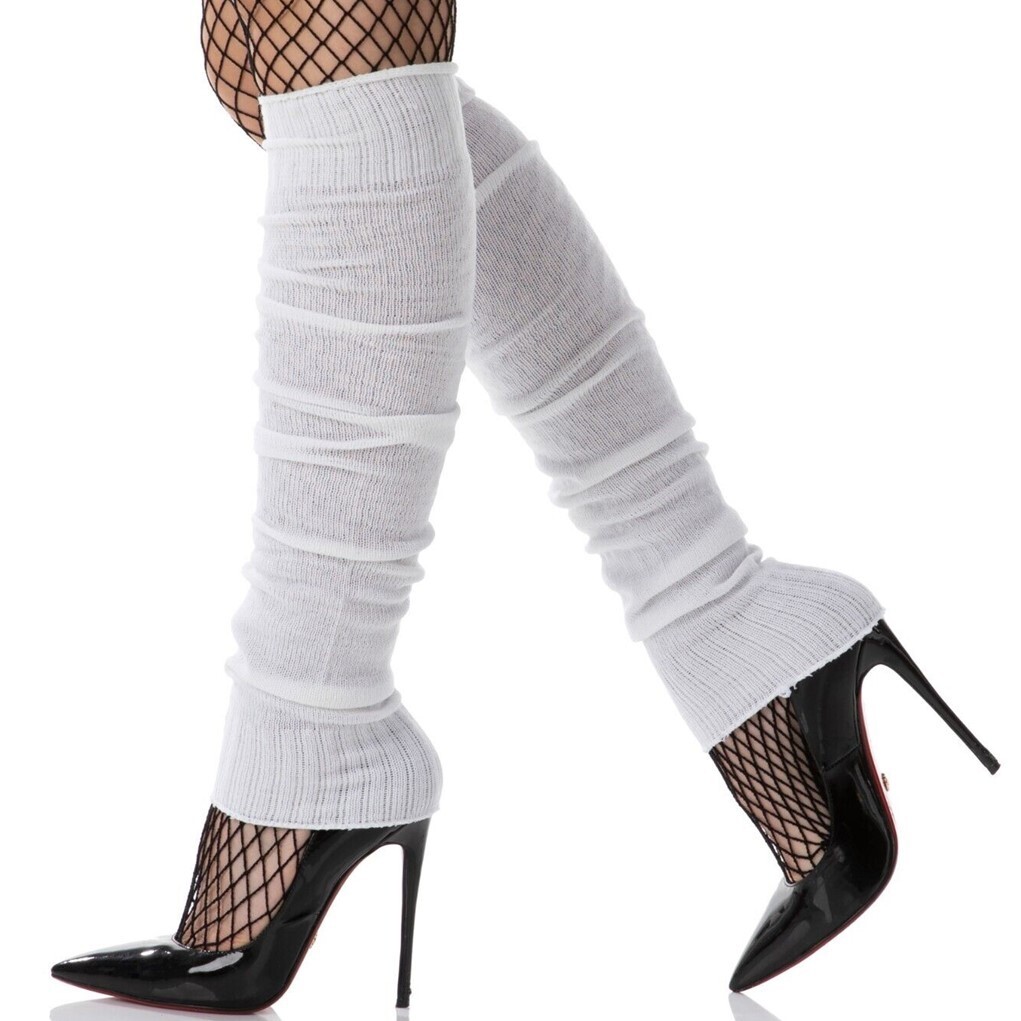 1980s White Leg Warmers and Fishnet Gloves Popstar Icon Neon Rave Roller Disco