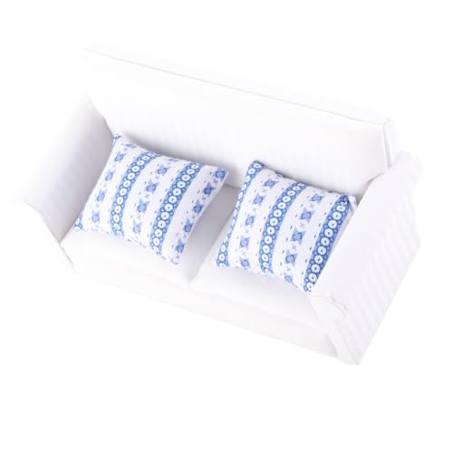 CHICIRIS CHICIRIS 1/12 Dollhouse Miniature Sofa Set White Living Room Furniture Accessories 2-seat Sofa with Cushions Children's Toys (Double with cushions)