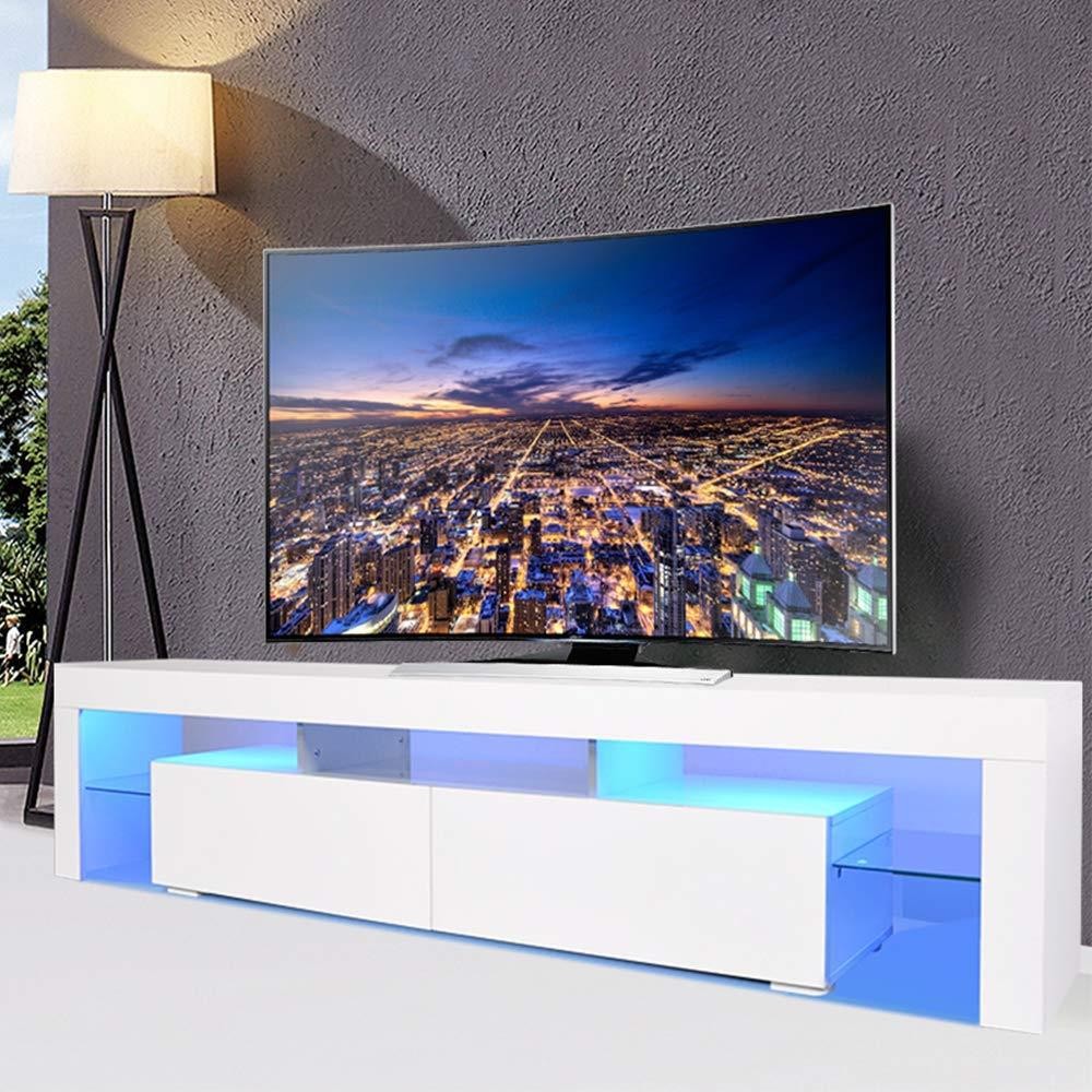 Modern TV Unit Cabinet Stand Doors LED White Furniture Living Room