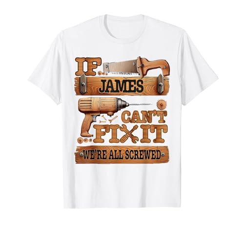 If James Can't Fix It, We're All Screwed Funny Name T-Shirt, Men, White, Medium