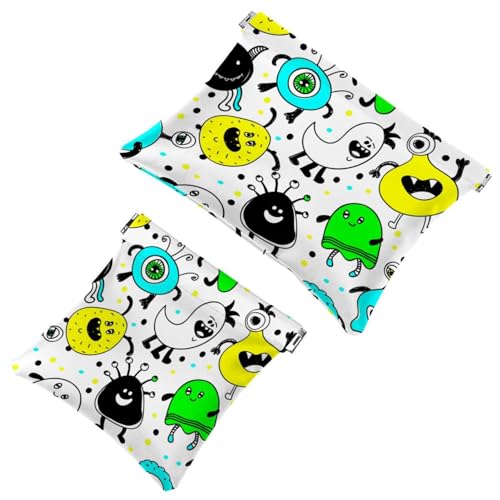2 PCS Monster White Pocket Cosmetic Bag, Self-Closing Shrapnel Makeup Pouch, Portable No Zipper Mini Travel Make Up Bag for Headphones Coin Lipstick Cosmetics Earphones Jewelry Organizer