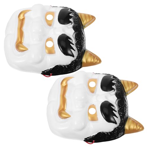 PACKOVE 2pcs White Prajna Nian Monster Mask Set – Japanese Samurai Demon Halloween Cosplay Masks for Men – Masquerade Face Cover for Party and Lunar New Year