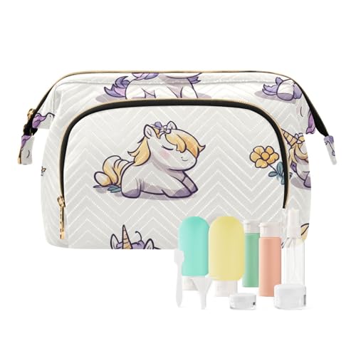 Foiosoh Cartoon Sweet Monster White Cosmetic Bags Essentials Travel Cosmetic Bag For Women Women's Coin Purse for Travel Accessories, Cute unicorns purple and yellow, One Size, Cartoon