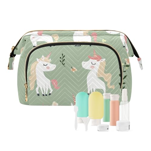 Foiosoh Cartoon Sweet Monster White Cosmetic Bags Essentials Travel Cosmetic Bag For Women Women's Coin Purse for Travel Accessories, Cute unicorns Sage Green, One Size, Cartoon