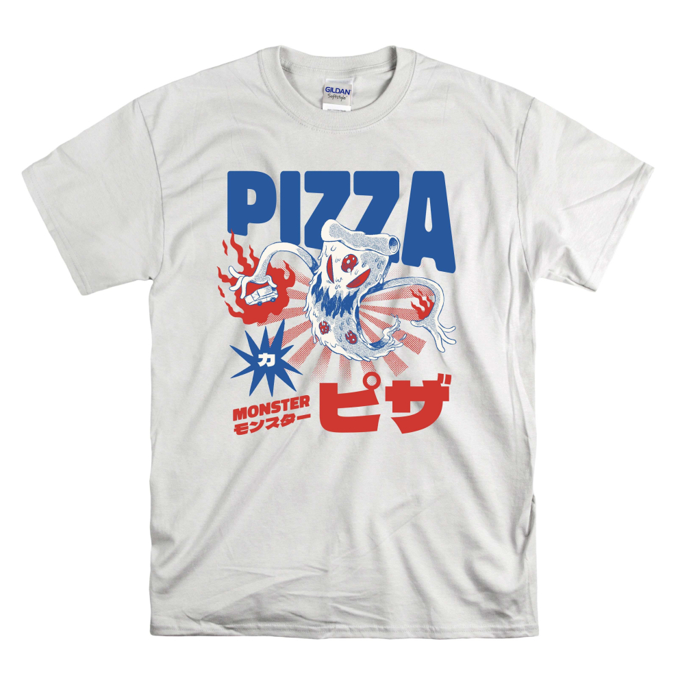 (Small, White) Food Monster Pizza Monster Black Women T Shirt Top