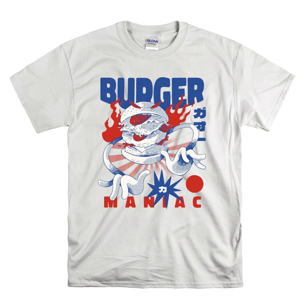 (Small, White) Food Monster Burger Maniac Men Women Unisex Top T Shirt