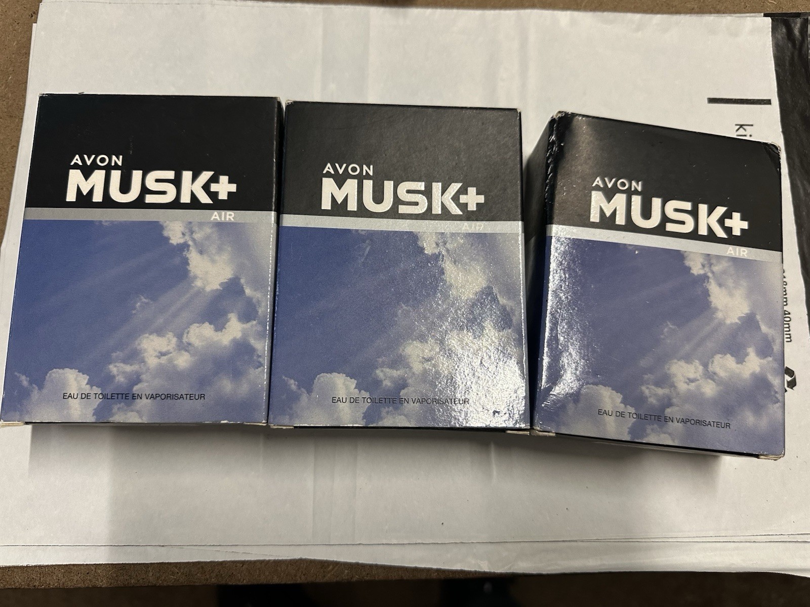 3 X AVON MUSK AIR FOR MEN EDT ~ WHITE GINGER, CLARY SAGE & SANDALWOOD 75ml