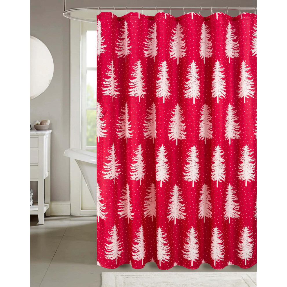 Christmas Holiday Shower Curtain: Elegant White Tree on Red Fabric Bathroom Seasonal Decor