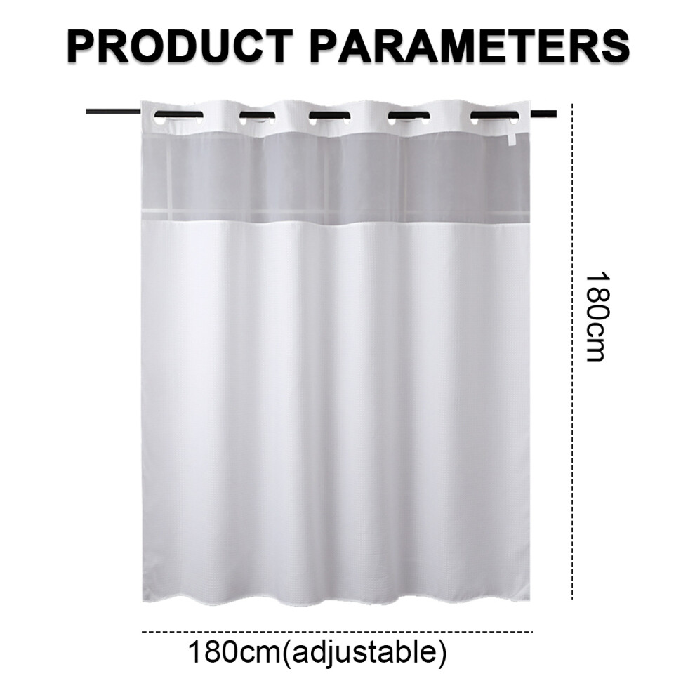 Elegant White Linen Style Fabric Shower Curtain, Waterproof Snap-On Liner for Bathroom Spa Experience, Light Filtering Mesh Top Window, Stylish Design