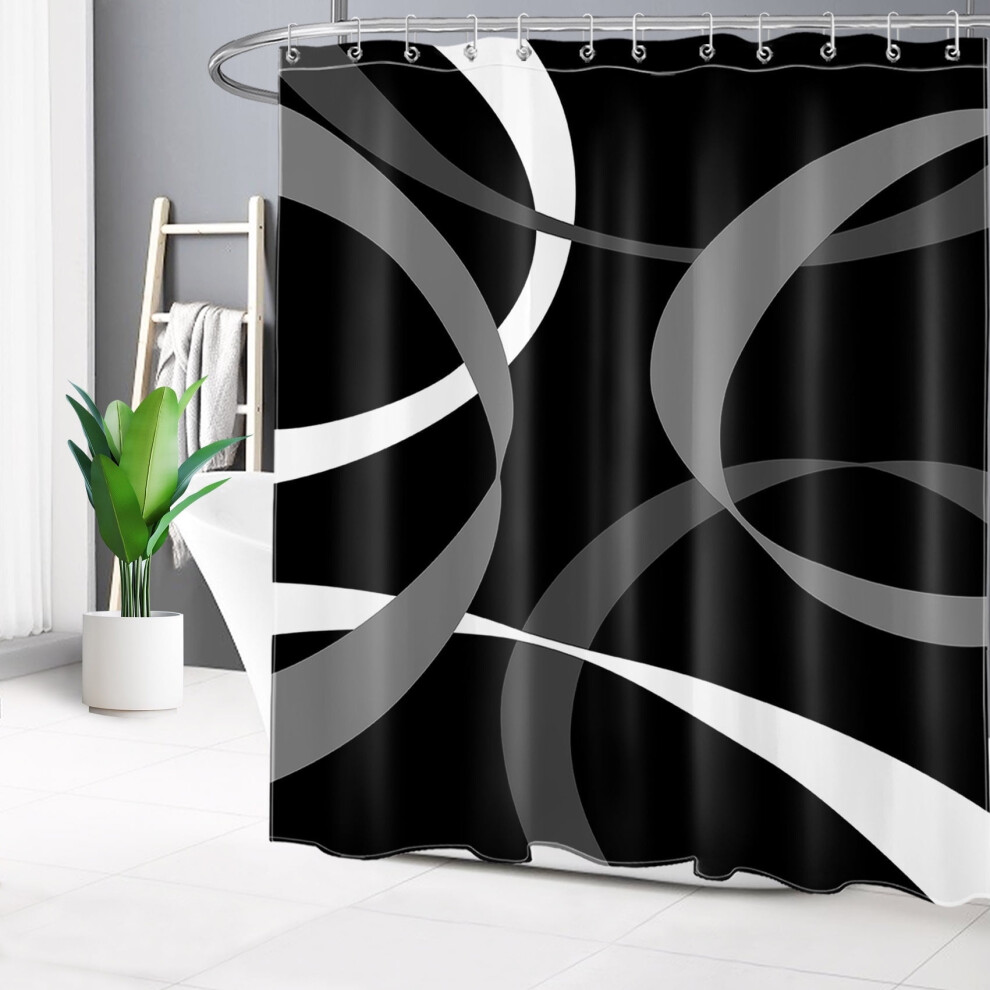 Stylish Bathroom Curtain, Digital Printing Technology on Water Repellent Polyester Material for a Durable and Modern Shower Experience, Black White, Q
