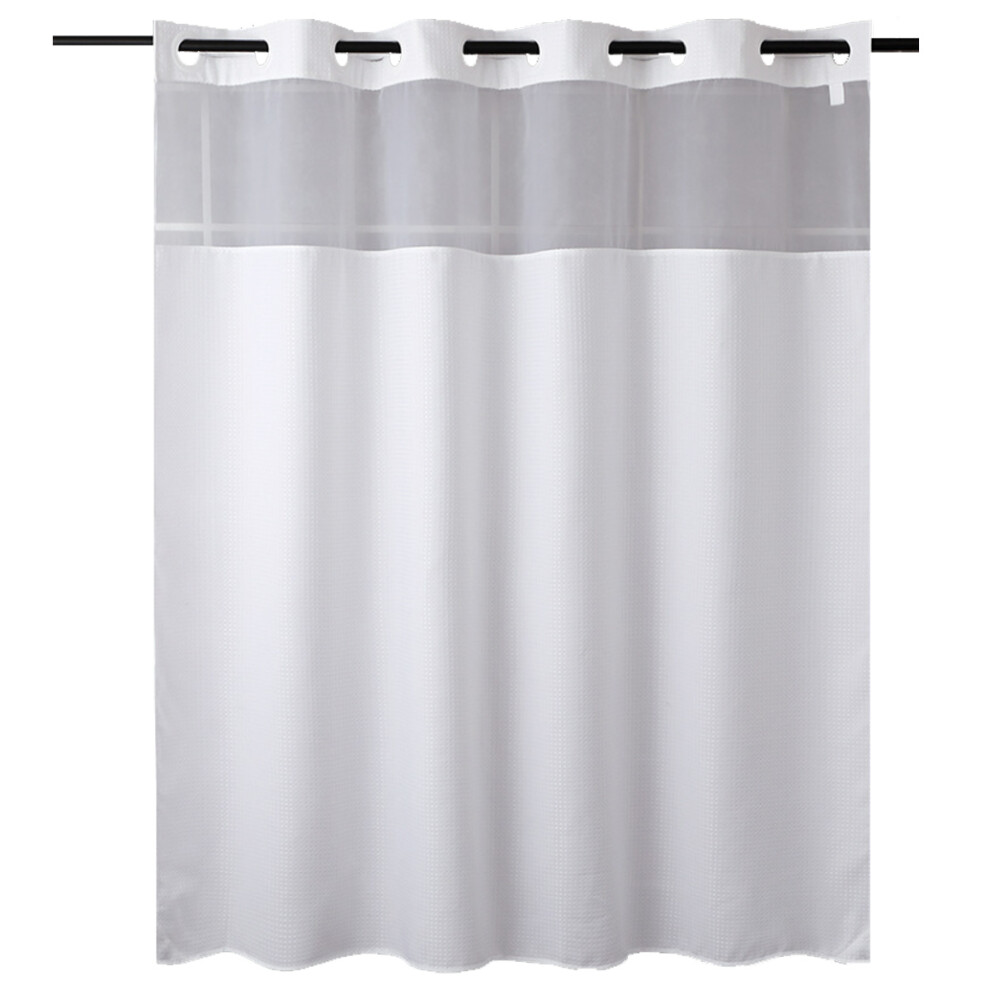 SUMGAR Hookless Shower Curtain with Snap on Liner White Waffle Fabric Shower Curtain for Bathroom Hotel Luxury Double Layer Weighted Cloth Washable