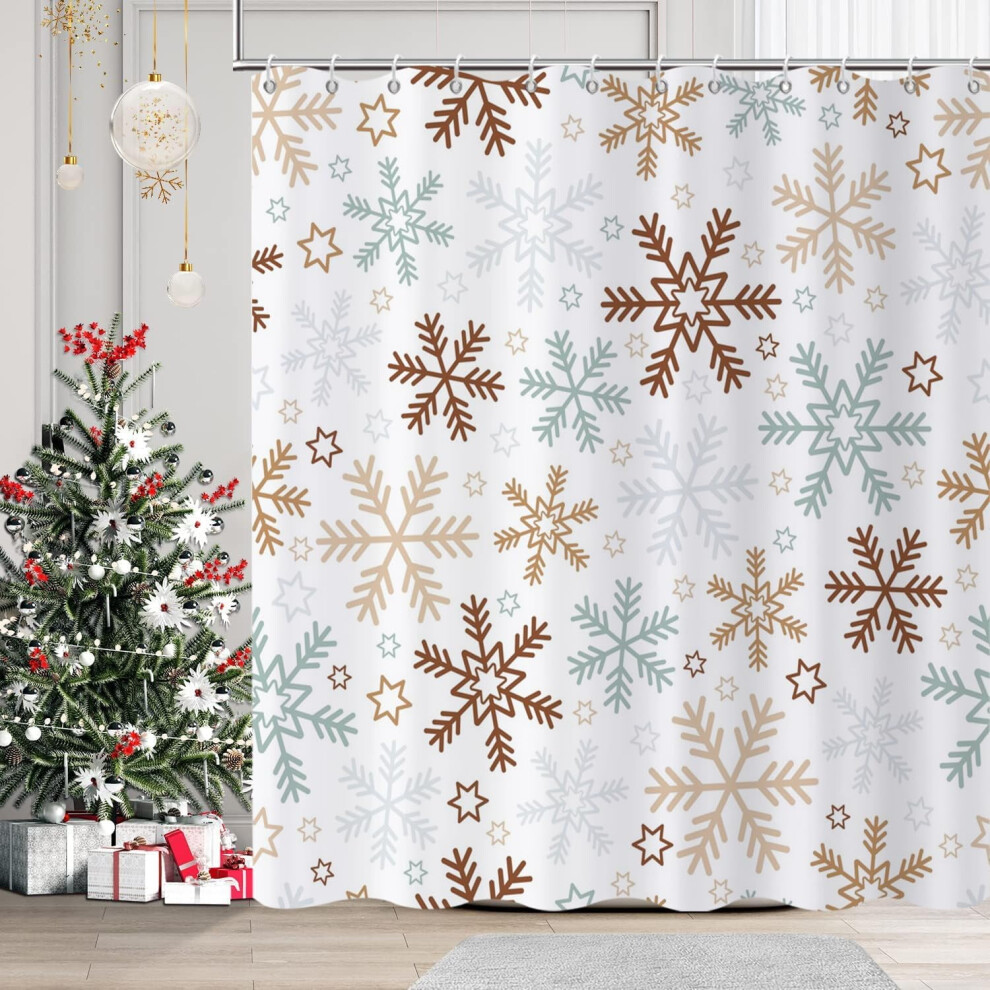 Christmas Shower Curtain with Snowflakes on White, Waterproof, 71x59 Inch, Holiday Bathroom Decor