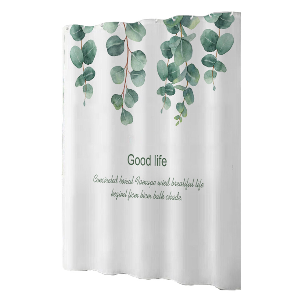 Green Monstera on White Background Shower Curtain, Waterproof Polyester Fabric, HD Printing, Machine Washable, Weighted Hem, Easy-care, Long-lasting W