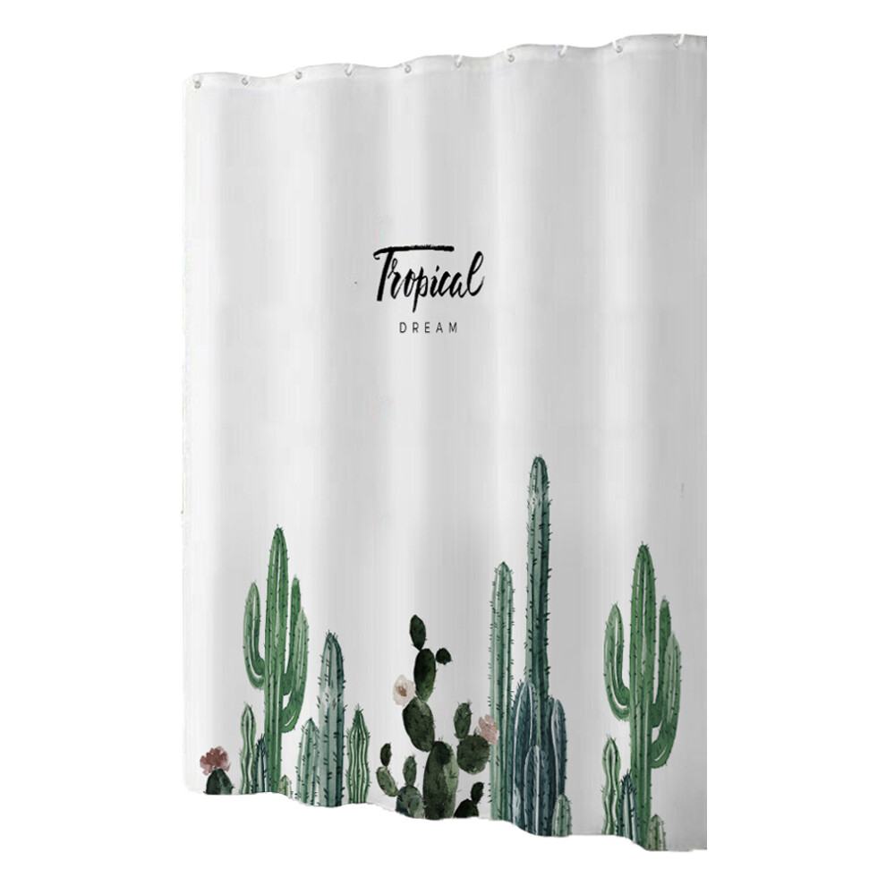 4 Pcs Shower Curtain with Matching Doormat Sets, Bath Curtain with Rugs(U Shape Mat, Bath Mat, Toilet Lid Cover Mat) with Hooks Print Seamless Green Cacti, Succulents and Floral Flowers on White
