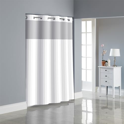 Hookless It's A Snap! Microfiber Shower Curtain, 3-in-1 Shower Curtain Includes Shower Curtain with Sheer Top Window, Flex-On Rings & PEVA Snap-in Liner, 71" x 74", White