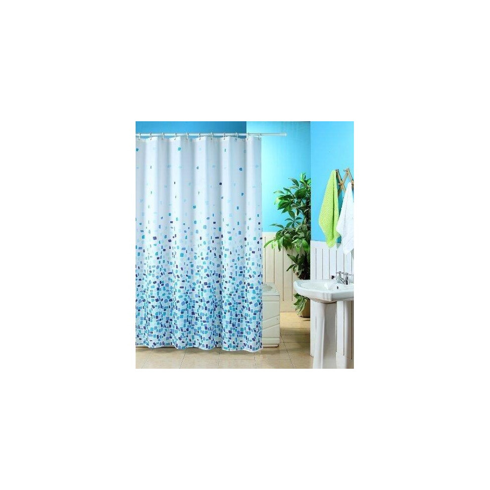 KAV Extra Wide width Mosaic Blue On A White Background Polyester Shower Curtain Including 12 White Shower Curtain Rings/MOSAIC PATTERNED POLYESTER SHO