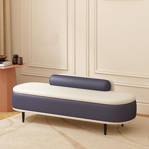 GHFXSCV Blue and White Upholstered Storage Ottoman Multifunctional Pouf for Bedroom Living Room & Entryway Elegant Bed End Seat 120x45x42 cm Perfect Closet nizer