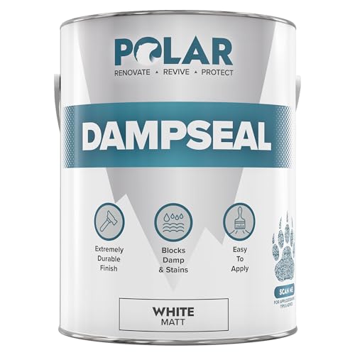Polar Damp Seal Paint - 5L, White - Primer & Topcoat for Indoor Walls & Ceilings - Mould Resistant Stain Blocker Paint - Quick Drying for Wood, Plaster, Cement and Stone - Matt Finish