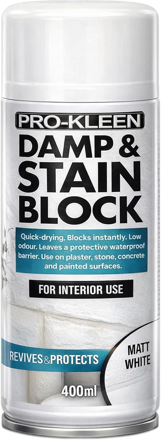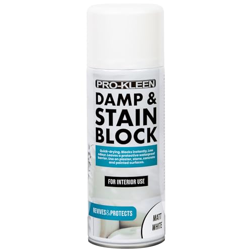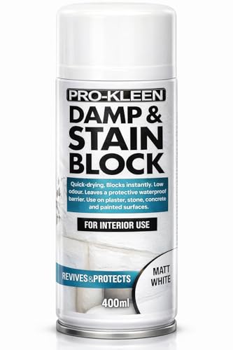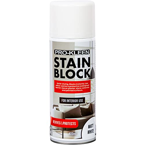 Pro-Kleen Damp & Stain Block Spray Paint Primer White Matt 400ml - Covers Damp, Mould, Grease, Nicotine & Rust Stains - for Walls & Ceilings - Leaves a Waterproof Barrier