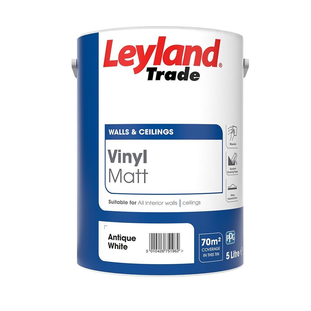 Leyland Trade Vinyl Matt Emulsion Paint for Walls & Ceilings 5L Antique White