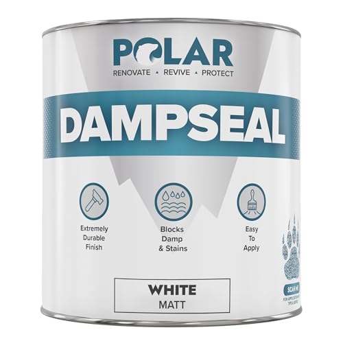 Polar Damp Seal Paint - 1L, White - Primer & Topcoat for Indoor Walls & Ceilings - Mould Resistant Stain Blocker Paint - Quick Drying for Wood, Plaster, Cement and Stone - Matt Finish