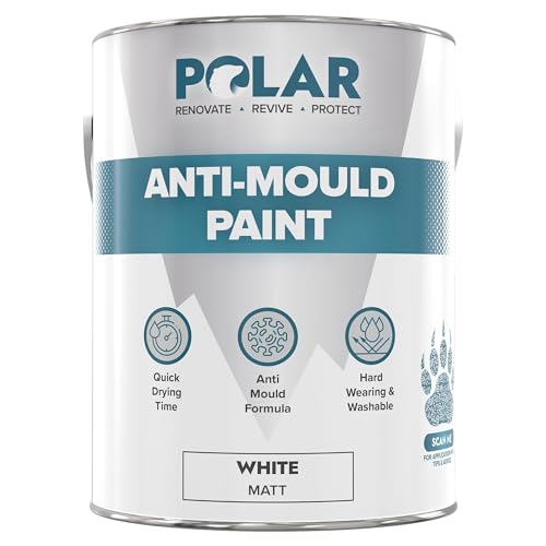 Polar Anti Mould Paint - 5 Year Mould Resistant Paint to Control Moisture - For Internal Walls & Ceilings - Brilliant Matt White Finish - 5L