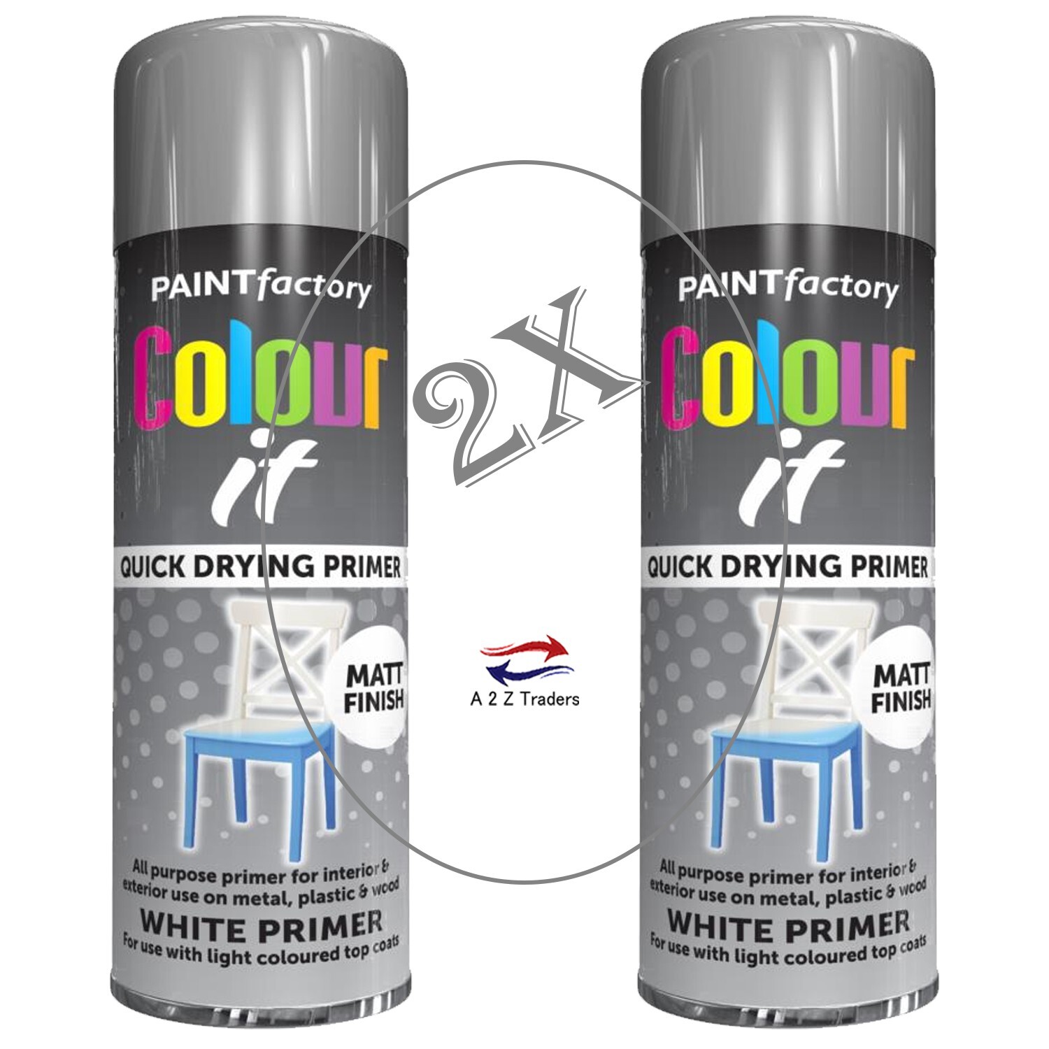 2x Spray Paint For Metal, Wood, Plastic Undercoat White Primer Matt Finish 250ml