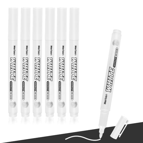 newatty White Permanent Markers Bullet Tip Marker Paint Pen, 6 Pack Acrylic Fabric Pen 1mm White Marker Pens Set Waterproof Quick Dry for Doodling Rock Metal Glass Wood Tyre Painting Plastic
