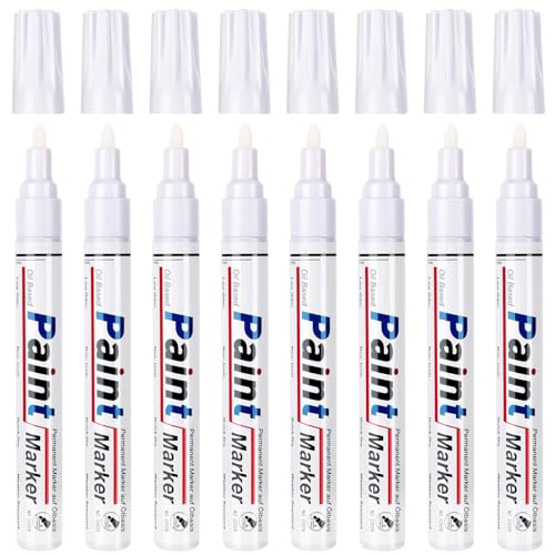 STANBLUE White Paint Pens 8 Pack Oil-Based Waterproof Paint Marker Set Quick Drying Permanent 2-3mm Tip for Rocks, Wood, Fabric, Plastic, Glass, Mugs, Metal, Cardboard