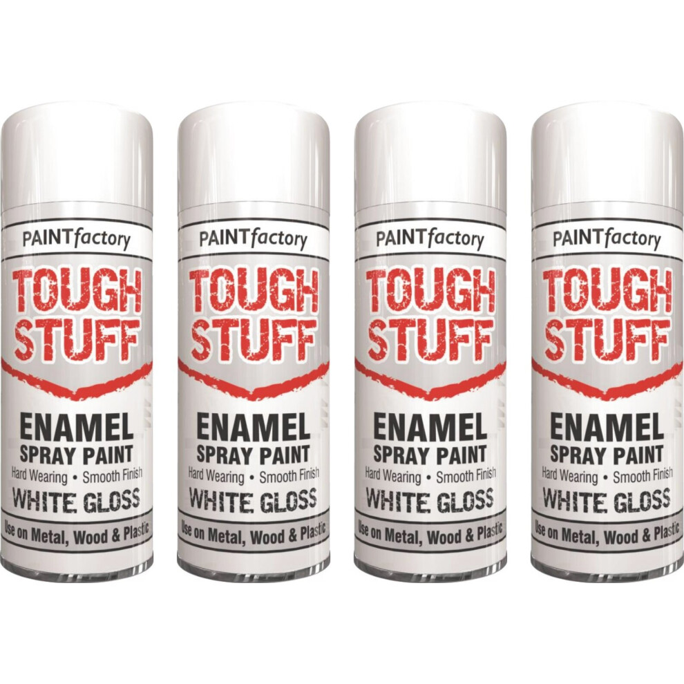 4 x 400ML Tough Stuff Enamel Spray Paint White Gloss Metal Wood Arts