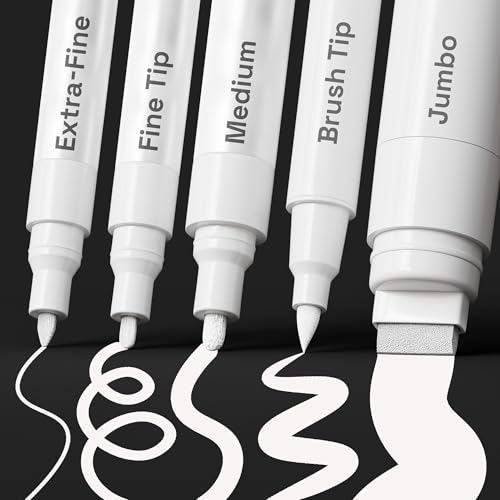 ARTISTRO Paint Pen for Rock Painting, Stone, Ceramic, Glass, Wood, Tire, Fabric, Metal, Canvas, Calligraphy Pen, Acrylic Paint Marker Water-based Extra-fine Tip 5 White