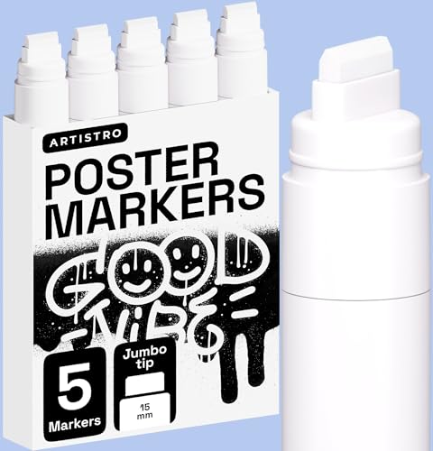 ARTISTRO Paint Pen for Rock Painting, Stone, Ceramic, Glass, Wood, Tire, Fabric, Metal, Canvas, Calligraphy Pen, Acrylic Paint Marker Water-based Jumbo Tip 5 White