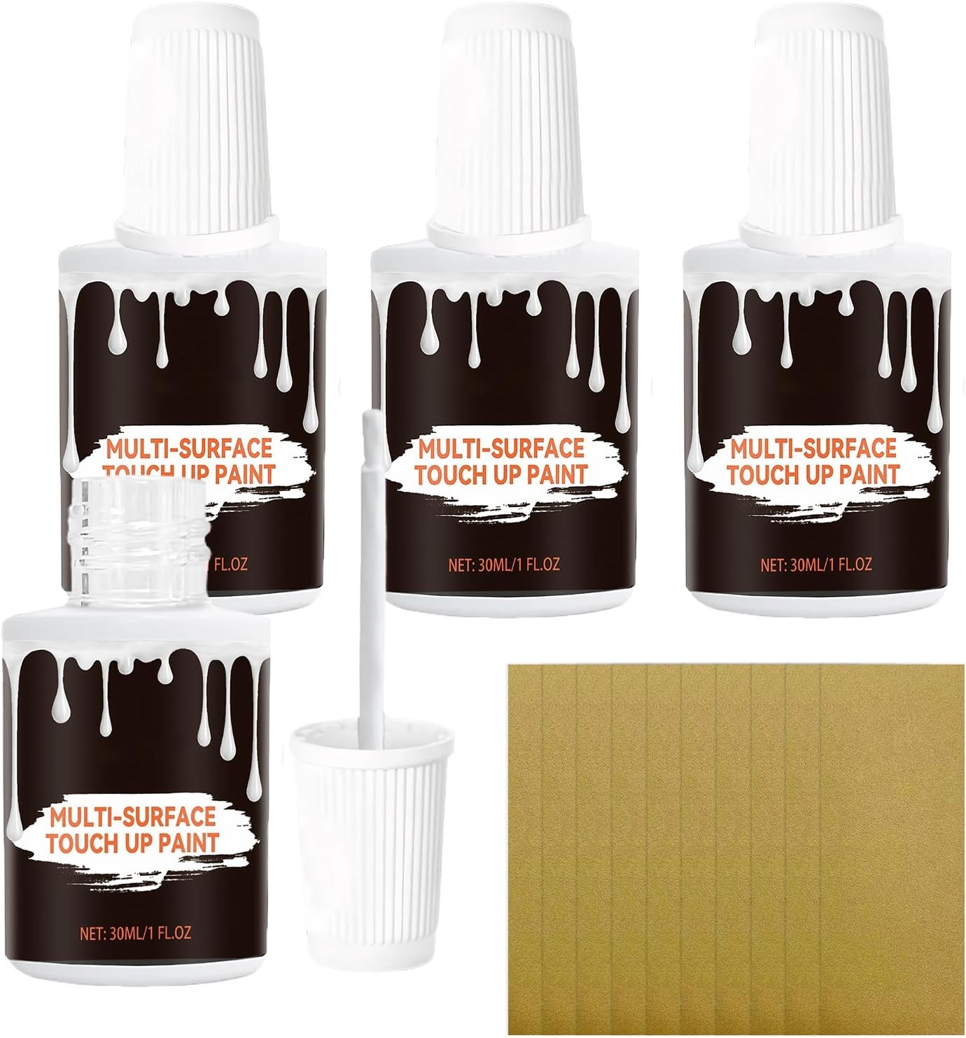 White Gloss Paint for Wood, 4 Pcs White Gloss Touch Up Paint with 10 Sheets of