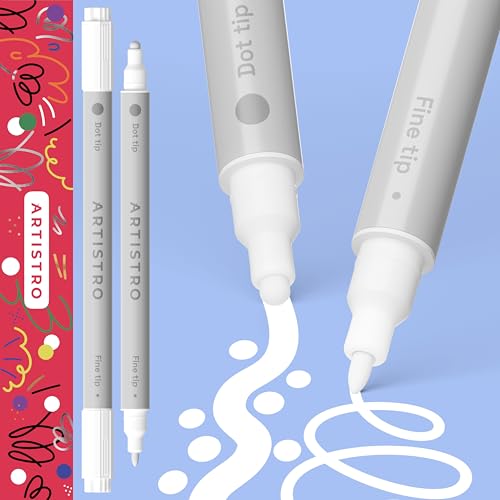ARTISTRO 2 White Acrylic Paint Pens, Dual Tip (Fine 1mm + Dot 5mm) for Fabric, Canvas, Rock, Glass, Wood, Paper, DIY, Kids and Adults